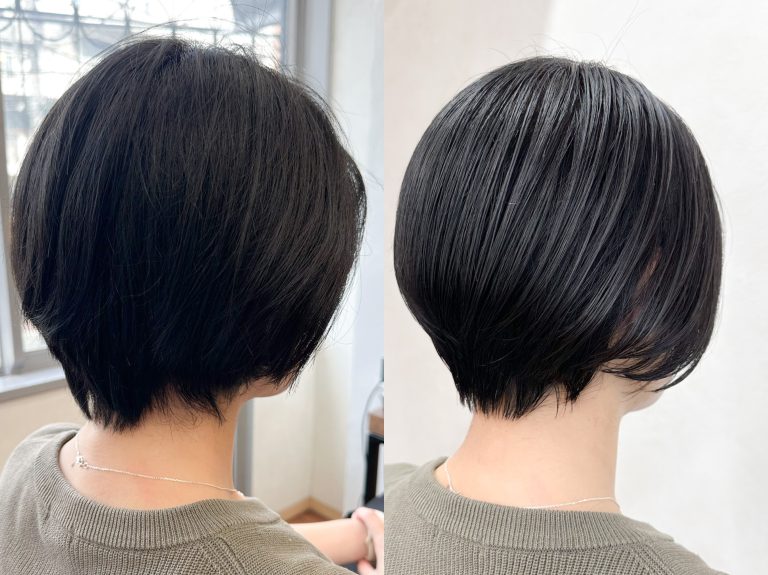 ビフォーでは少し重たく見えやすかった後ろ姿を、首元がすっきり見えるようにカットし、丸みのあるシルエットに仕上げました。自然と横顔や後ろ姿が美しく見えるのがポイントです。